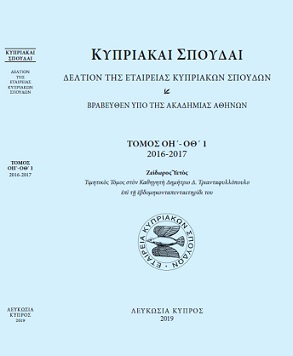 The Cyprus Studies Society has published the new Υearbook of Cypriot Studies vol. 78-79 (2016-2017), which is a double volume (ISSN 1450-0299) and consists of four issues of 1656 pages in total. This book is dedicated to the 80th anniversary since the foundation of the Society of Cypriot Studies (1936) and to Prof. Demetrios Triantaphyllopoulos on the occasion of his 75 years and bears the title “Ζείδωρος Ὑετός” (Zeidoros Hyetos).