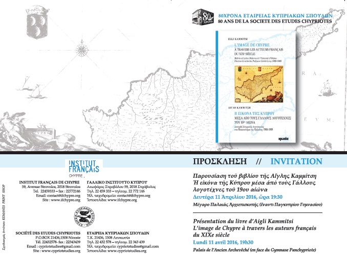 Ἡ βιβλιοπαρουσίαση θὰ λάβει χώρα στὴν Ἑταιρεία Κυπριακῶν Σπουδῶν