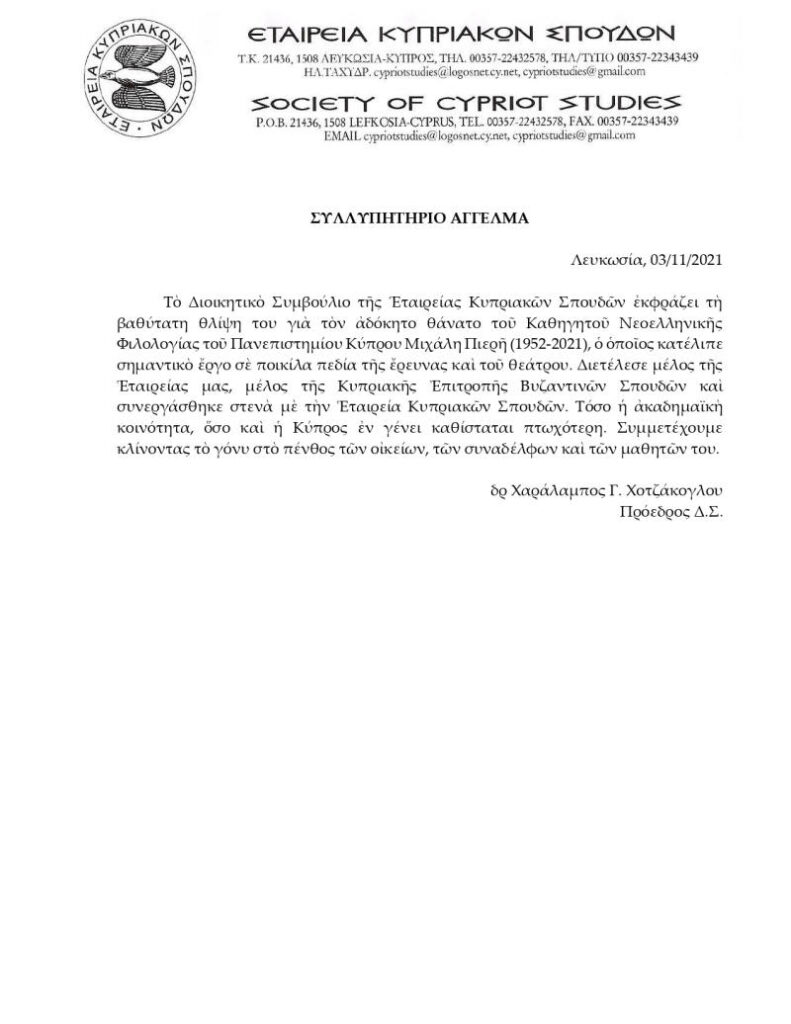 Εταιρεία Κυπριακών Σπουδών ή, και, Μουσείο Λαϊκής Τέχνης Κύπρου Τ.Θ. 21436, 1508, Λευκωσία, Κύπρος