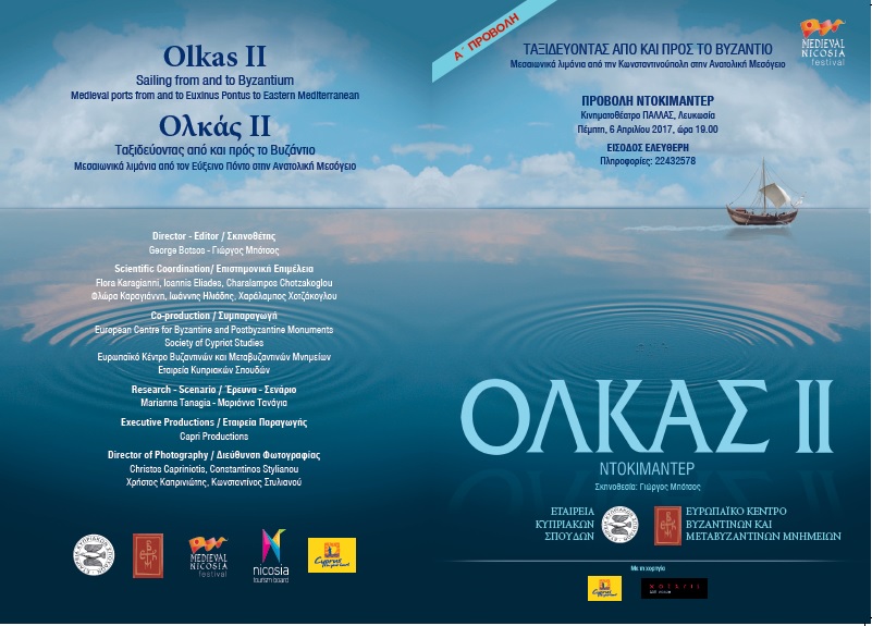 Η Εταιρεία Κυπριακών Σπουδών σάς προσκαλεί την Πέμπτη 6 Απριλίου 2017, στις 19.00, στο Κινηματοθέατρο ΠΑΛΛΑΣ στη Λευκωσία στην Α΄ Προβολή της ταινίας ΟΛΚΑΣ IΙ Ταξιδεύοντας από και πρός το Βυζάντιο Μεσαιωνικά λιμάνια από τον Εύξεινο Πόντο στην Ανατολική Μεσόγειο Χαιρετισμούς θα απευθύνουν: δρ Χαράλαμπος Γ. Χοτζάκογλου Πρόεδρος Δ.Σ. Εταιρείας Κυπριακών Σπουδών δρ Αναστασία Τούρτα Διευθύντρια Ευρωπαϊκού Κέντρου […]